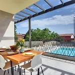 Villa Helios cuenta con una piscina y se encuentra a una distancia de 4 km de Aquarium Pula. La villa ofrece acceso a una terraza e invita a los huéspedes a visitar el Museo histórico y marítimo de Istria, situado a unos 15 minutos en coche.